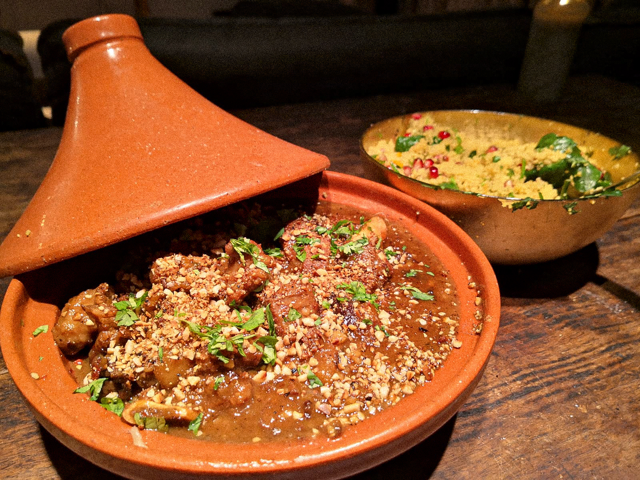 Tagines are cooked on the stove, or on an open fire, not in the oven. I love tagine and this recipe is amazing, and I’ve made it a bunch of times. I got it from a local woman. The sweet stickiness of the prunes blends perfectly with the lamb and all the warm spices like cinnamon and cumin.