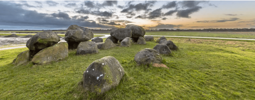 Drenthe is a province in the East of the Netherlands right next to the border with Germany. Drenthe has been inhabited by people ever since the neolithic period. The evidence of the presence of this early community that inhabited this land are the Hunnebedden. Hunnebedden are dolmens that were used as tombs for important members of the tribe. The giant boulders were pushed from Scandinavia to the north of the Netherlands during the second last ice age. Try that for a workout! We still have 54 hunnenbedden in the Netherlands, 52 of which are placed in Drenthe.