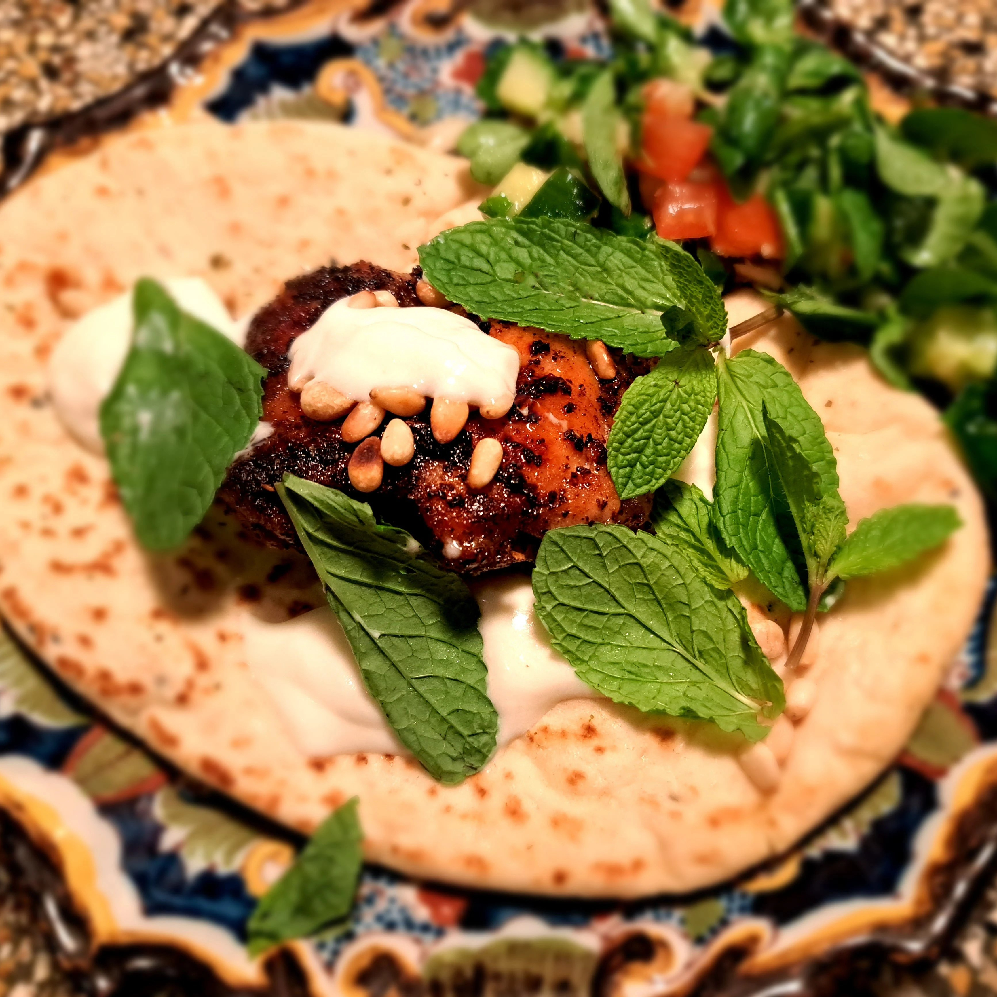 The Palestinian cuisine is incredibly diverse and delicious. One popular dish is “Musakhan,” a traditional Palestinian meal consisting of roasted chicken, sumac, onions, and pine nuts served on flatbread. I used storebought flatbread because I really didn’t have time to make my own.